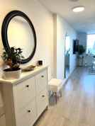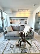 Located on the 10th floor, the unit is filled with beautiful natural light throughout the day. Smart, custom built-ins give the space its edge, including a streamlined built-in closet, bathroom cabinetry, and dedicated shoe storage that keeps everything clean and intentional. Electric blinds in the bedroom add a polished, quietly luxurious finish.