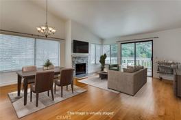 This appealing unit features vaulted ceiling ‘s, hardwood floors in living room and kitchen, wood like flooring in all bedrooms and tile in the bathrooms. The living room opens to a large balcony that offers beautiful views of the surrounding mountains, trees and pool. The kitchen features stainless steel appliances, gray quartz countertops and plenty of cabinet space. Primary bedroom features en-suite bath and mountain views. Additional upstairs bedroom could also be used as bedroom/office/gym... Two bedrooms downstairs with a full bathroom and direct access to a deck. In unit laundry, access to community pool and two car detached garage. Located in the award-winning Oak Park school district. Convenient to great shopping and restaurants. Easy drive to the beaches of Malibu. A MUST SEE!