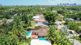 This beautiful home is located in Poinsettia Heights area of Ft Lauderdale. Enjoy the views of the large tropical backyard pool area. This three bedroom, two bath home has marble floors, renovated kitchen and baths with step- in showers. Bedrooms all have access doors to the yard. Yard has wood covered deck for out door living. The garage has been converted into third bedroom. Pool is heated.