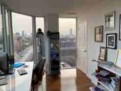 Stunning Penthouse Condo in the heart of vibrant Little Italy. Dazzling sunlight. Large, wrap-around balcony with plenty of room. Two-story layout separates bedrooms from living room + kitchen area. Lovely small building (7 floors) friendly for creatives, young professionals, families, and visitors to Toronto.