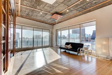 Grande terrasse, vue sur la ville, condo vitrée avec énormément de lumière naturelle. Wow !