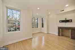 Townhouse living at its finest, this flat is at treetop level, with many nooks and alcoves. It has spaces to enjoy life together, as well as quiet spaces to take time out to relax and reflect. It has an open space living room. An alcove by the picture windows is a perfect place for a couch. The bracket mounting for the Flat screen will look a lot better with your TV mounted on it. Turn the flatscreen left toward the window, or straight ahead toward your guests or right toward the kitchenette. (Perfect for following along with your favorite cooking show.) The open plan hallway extends the length of the apartment. Three doors open on the right. A smaller second bedroom has a closet and built-in bookcases. This could be a place to work from home. The second door on the right leads to the 2nd bath, with shower. The third door on the right has the washer/dryer. The door straight ahead leads to the main bedroom. This has an ensuite bath, with tub. The back sun-filled southern exposure antechamber is a second work at home area. The back patio is an ideal space to rest from the day. This apartment has a multiplicity of spaces for a variety of uses. It is suited for a couple, or a group. The different spaces allow for me-time and for we-time.