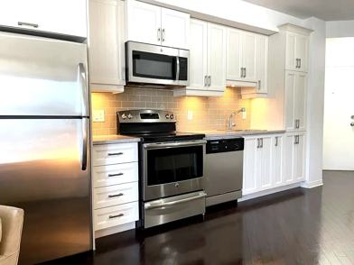 • Stainless steel appliances (stove, fridge, dishwasher, microwave)