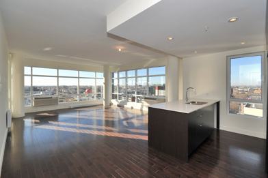 CONTEMPORARY STYLE - 2 BEDROOM CORNER UNIT located on the 8th floor of a 10 storey PRESTIGIOUS secured building in the revitalized "Le Triangle" sector of CDN adjacent to Town of Mount Royal. With its large floor to ceiling windows you will be treated to panoramic breathtaking views of Montreal!