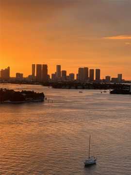 Residence 1705 at The Floridian is a direct west-facing 1-bedroom, 1-bath designer home showcasing breathtaking Biscayne Bay and Downtown Miami skyline views from the moment you enter. Floor-to-ceiling glass frames a stunning panorama that becomes the backdrop to everyday living — from cooking in the sleek, upgraded kitchen with stainless steel appliances and quartz countertops, to relaxing in the light-filled living area or dining against a spectacular sunset skyline.