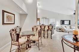 Welcome to your own little piece of paradise! You’ll instantly be impressed with this immaculate fully furnished condo with endless amenities to enjoy the South Florida lifestyle. This top floor condo has high vaulted ceilings and a practical split floor plan with 2 spacious bedrooms, 2 baths, and an open living/kitchen concept that offers a versatile breakfast bar, and a balcony! The primary bedroom features an en-suite bathroom with soaker tub/shower and a walk-in closet. The unit has high impact windows/slider, and a washer and dryer in the unit! Mirabella Villa is gated community located less than 2 miles from the beach and offers a club house featuring community lounge, pool/spa with an outdoor BBQ kitchen, a billiard room, fitness room, indoor basketball court, and playground area.