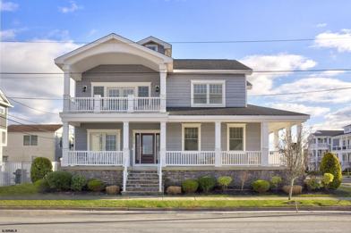 Spectacular Custom Corner Home in the Desirable Margate Parkway Area Located at the corner of Mansfield and Fulton, directly across from the bay, this stunning 6-bedroom, 4-bath custom-built home offers the perfect blend of luxury, comfort, and shore living. A sensational wrap-around front porch sets the stage for gracious coastal living — the perfect place to enjoy your morning coffee, an afternoon breeze, or simply unwind at the end of the day. The main level features a spacious open floor plan designed for effortless entertaining. A beautiful living room with a fireplace flows seamlessly into a full-sized dining area and a gourmet kitchen that makes cooking a pleasure. Just off the kitchen, a deck with a barbecue provides additional space for outdoor dining and gatherings. Also on the first floor is a large bedroom suite with a stunning private bath — ideal for guests or convenient one-floor living. Gorgeous hardwood floors run throughout the first level, and the home is filled with natural light. The second floor boasts a spectacular primary suite complete with a sitting area, fireplace, oversized walk-in closet, and a private deck with bay views. Two additional spacious bedrooms and an upscale full bath complete this level. The laundry area is conveniently located on this floor. The third floor offers two more full-sized bedrooms and a beautifully appointed bath, providing ample space for family and guests. This meticulously maintained home shows like new. Situated on an oversized 60 x 80 lot, it features a fenced-in backyard, a shed for bikes and beach gear, and a long driveway off Mansfield with parking for three or more cars. Ideally located within easy walking distance to the JCC and its many amenities, including a gym, tennis courts, and basketball courts, this light-filled, beachy, and elegant home is the perfect setting for creating lasting family memories.