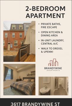 Just a 10-minute walk to Drexel and 15 minutes to UPenn, with quick access to train/trolley stops, restaurants, coffee shops, grocery stores, downtown Philly, and routes to King of Prussia.