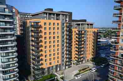 11th floor corner unit with large windows facing south-east with magnificent views of Mont Sainte-Hilaire and Mont Saint-Bruno: