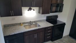 New remodeled kitchen with dishwasher, modern 42" cabinets ,granite counter top, stainless steel sink, range, over the range microwave oven with hood .