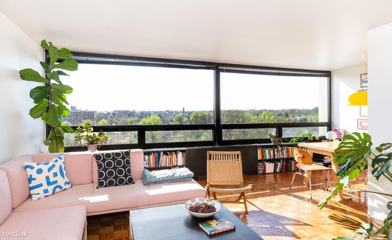 Mies van der Rohe's Highfield House, designed "to create a visually unobstructed feeling of openness and space. .. " Spectacular westerly views from this charming unit's full wall of windows. Coveted, nicely maintained original features, newer stainless appliances. Full-service doorman building with pool and on-site valet parking. heat, A/C, cooking gas, hot water all included in the rent. Close to Johns Hopkins University, Union Memorial Hospital and Penn Station.