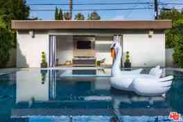 Available fully furnished and turnkey for short term, monthly and longer term rentals! Entertain or unwind in a gated, impeccably-decorated, gated, turn-key villa with resort-level amenities. Open plan living and dining spaces with gourmet kitchen include flat panel displays and full-house smart entertainment system that extend onto the grounds of a double-sized lot with expansive backyard POOL, CABANA, FIREPLACE, and BBQ to provide space for family and guests day or night. Retreat to the PRIVACY of spacious second level en suite bedrooms with balconies or stretch out in the generously appointed master suite with walk-in closet and bath. Play human chess, bathe in the sun, or unwind in the jacuzzi under the stars on the versatile rooftop deck with 360 degree VIEWS of Los Angeles and the HOLLYWOOD SIGN. Located a short walk from a large array of diversions on Melrose Ave and minutes from many fabulous destinations, this warm modern masterpiece will sparkle in your memory.