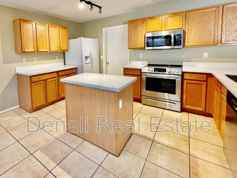 No Application Fees! Spacious 4 bedroom, 2.5 bathroom two-story San Tan Valley home located in the desirable Johnson Ranch community. This home offers two-tone paint throughout, ceiling fans in each room, upgraded window blinds, sun screens, and high ceilings for added natural light and space. The floor plan provides multiple living areas including a large front living room, separate family room, and a huge upstairs loft, perfect for an office, playroom, or additional living space. The open kitchen features a large island, abundant cabinet space, separate pantry, ceramic top electric range, built-in microwave, dishwasher, and refrigerator. The primary suite includes a large walk-in closet, dual sink vanity, separate shower, and oversized garden tub. The two-car garage provides ample parking and storage.