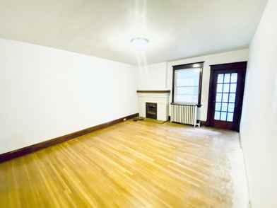 The master bedroom is very large and can accommodate a king size bed and has a huge closet. Eat-in kitchen can accommodate a small dining table or extra storage. The kitchen has all appliances with a fridge, and stove (currently being renovated with new white IKEA cabinets, counter, and new appliances including dishwasher). Large Living room with fireplace. Smaller bedroom can also be an office. Lots of storage space: 4 closets. Refinished Hardwood floors throughout. Private covered balcony. Will be repainted white before your move-in date.