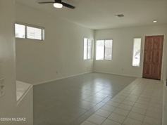 Vail School District. This Charming home features No Carpet, 3br/2ba, 2 living rooms, laundry room and a 2-car garage in desirable Santa Rita Ranch, located in southeast area of Tucson. Kitchen with Built-in microwave, Dishwasher, Gas Oven/Stove, fridge, island & pantry. Vaulted ceilings. Ceiling fans. Spacious Master Bedroom with Walk-in Closet, lengthy vanity & tub/shower combo. Covered patio. Private Backyard with mountain views and backs up to a desert/wash area. Easy access to I10. 2 small pets Ok. This is a must see home for rent! Non Smoking Home. Renter's Insurance required. Parking restrictions - garage & driveway only.