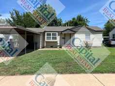 This spacious 4 bedroom home has a lot to offer! Living room has a lot of natural light. Kitchen comes equipped with dishwasher, gas stove, and plenty of storage space. Laundry hookups are located in the converted garage just off the kitchen. An additional living area is right off the kitchen and leads outside. 2 bedrooms are off the kitchen and 2 bedrooms off the living room. The backyard has plenty of space for those summer cookouts. Close to Tinker Air Force Base, shopping, dining and easy access to I-40.