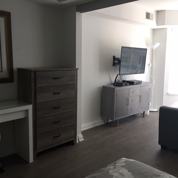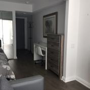 Appliances in the unit are (B/I Dishwasher, Fridge, Stove, Oven Microwave), also Washer /Dryer, Window Coverings, TV and tv stand with storage,Desk with chair , couch, small kitchen table with chairs, dresser with drawers, queen size bed and 1 Locker included on the same floor as the apartment.